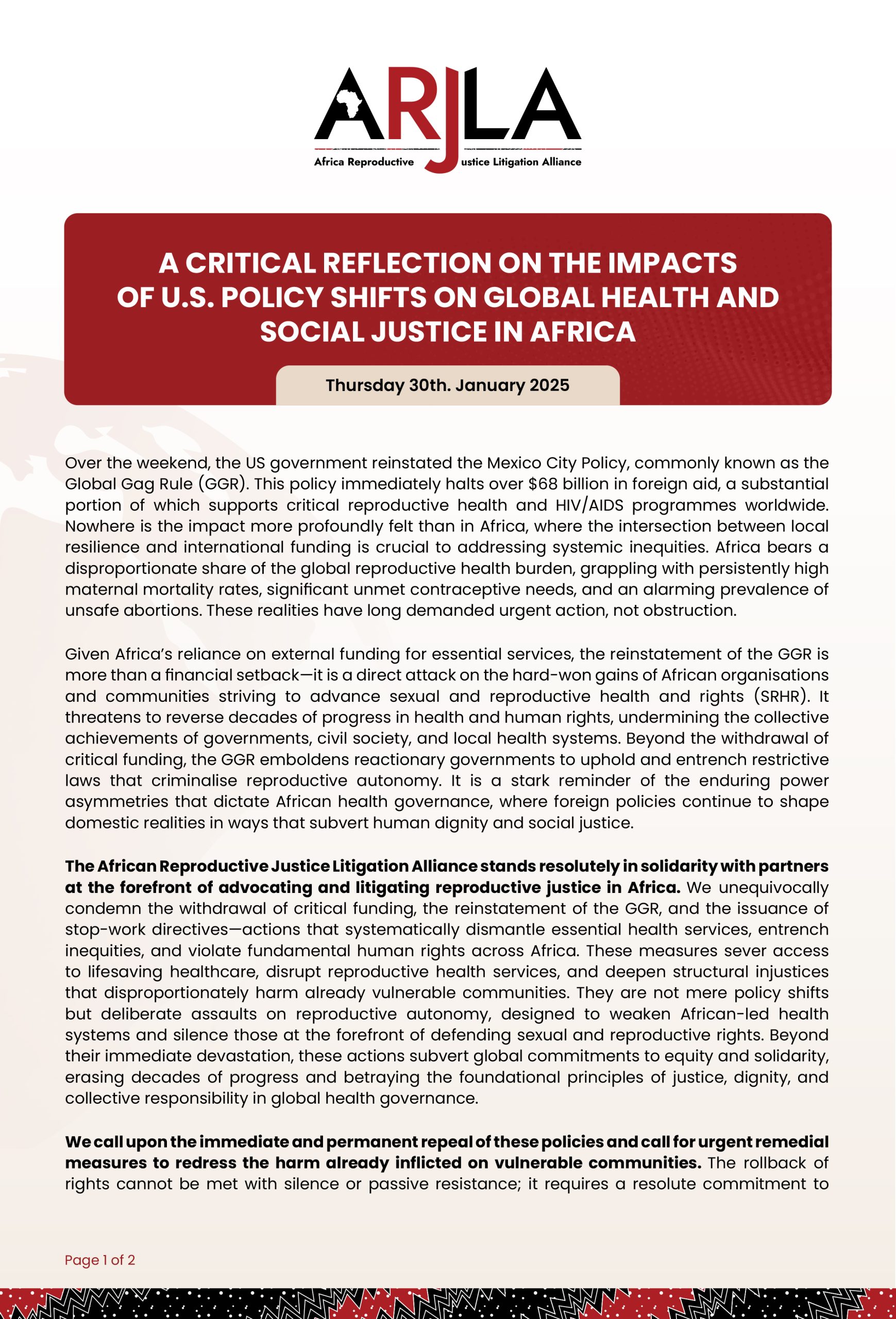 ARJLA_STATEMENT ON IMPACT OF GLOBAL GAG RULE-1 copy