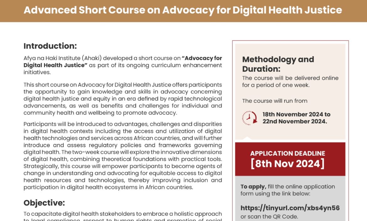 Advanced Short Course on Advocacy for Digital Health Justice COHORT 2 CALL FOR APPLICATIONS...