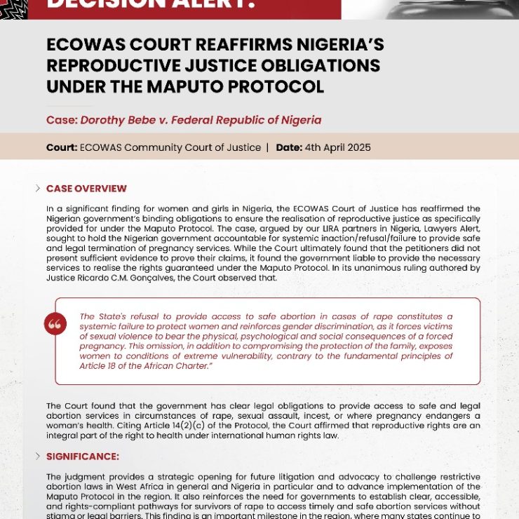 DECISION ALERT: ECOWAS COURT REAFFIRMS NIGERIA’S REPRODUCTIVE JUSTICE OBLIGATIONS UNDER THE MAPUTO PROTOCOL