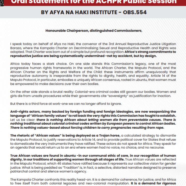 Afya na Haki’s Oral statement for the 85th Ordinary Session of the African Commission on Human and Peoples’ Rights (ACHPR) Public Session